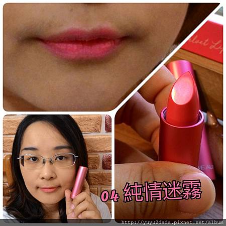 這次體驗的是《04純情迷霧》~這款唇膏總共有6色可以選擇~每天可以按照不同心情場合來變換唇色喔~