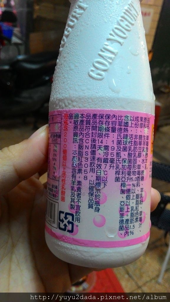 這款喝起來跟市售的優酪乳一樣~我根本喝不出有羊奶的騷味~一口一口很滑順的草莓優酪乳~