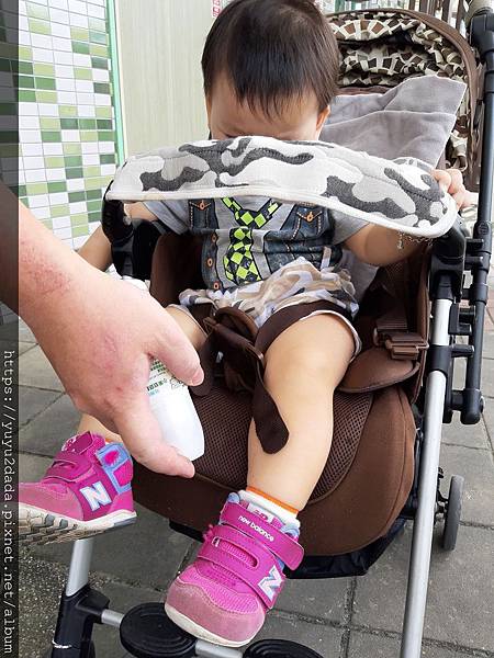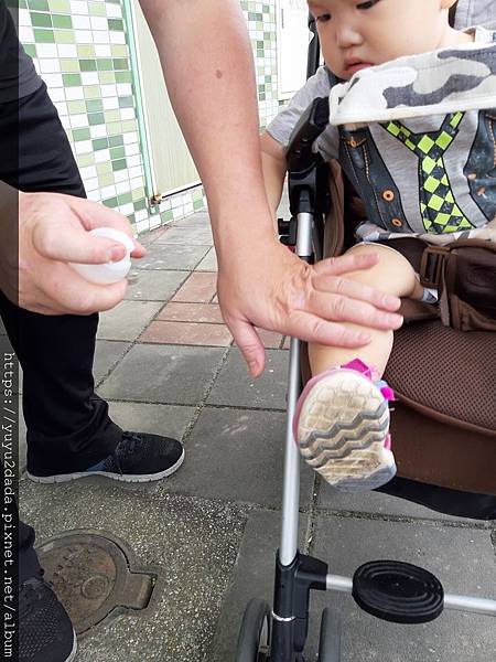 這小孩之後在推車上經歷了排隊等候,中間體力不支睡着~到離開遊樂園都沒有再被蚊子叮咬了!