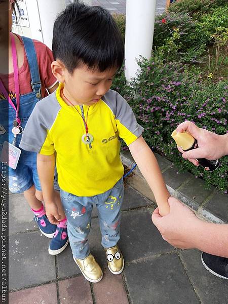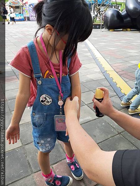 太嫩的小彩蛋才剛踏進兒童新樂園的門,老爺就發現他的手上有一隻蚊子,馬上給他就地正法,不過我們家小彩蛋已經被叮到了啦>_<