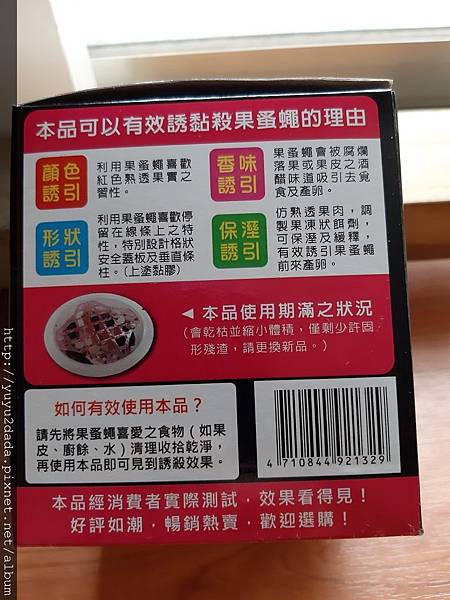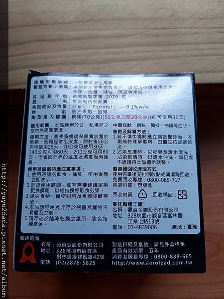 包裝的上、下方~看圖片才知道原來這種小小的蠅有分果蠅跟蚤蠅~我都叫他水果蠅,如果不是這圖片標示出來還真的不知道呢~