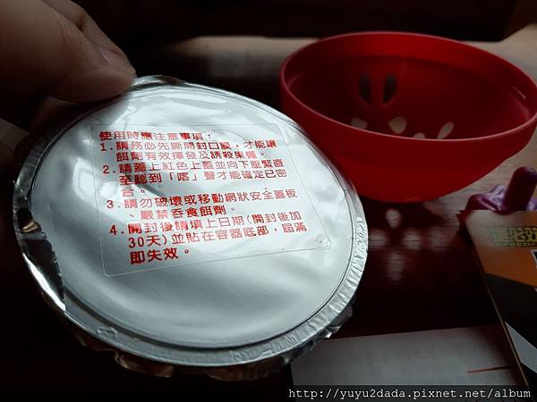 將紅色上蓋拿開~就會看到主體的封膜~上面還有注意事項提醒~