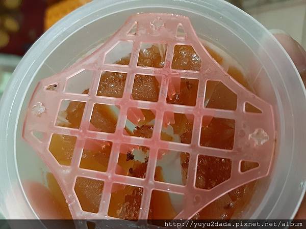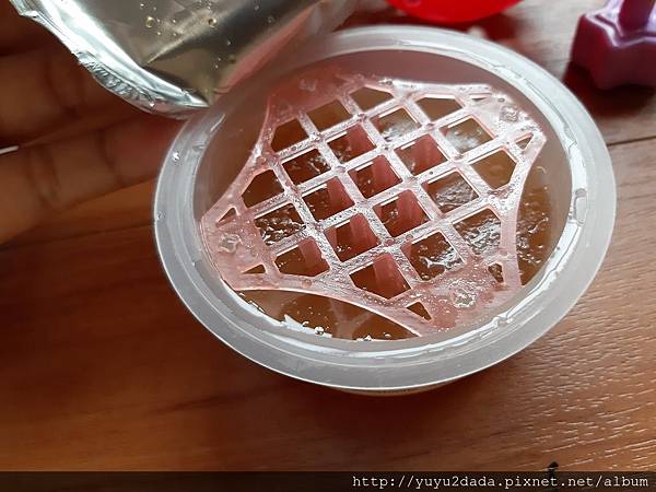 打開誘食餌膠的封膜~就可以看到粉色格子網 跟下面的誘餌凝膠~