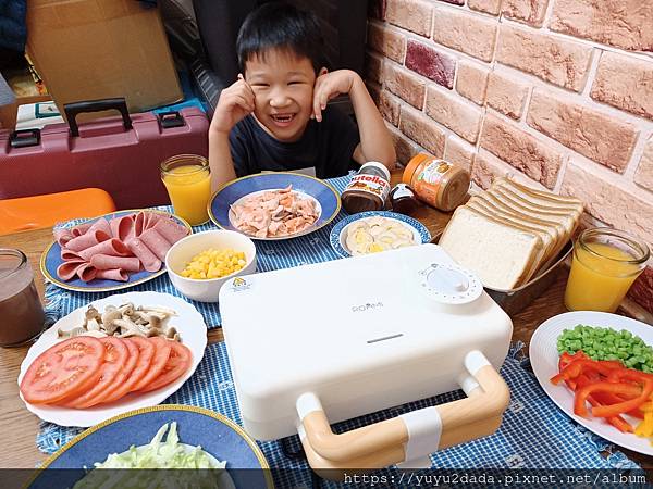 小扭蛋等不及了~迫不及待要自己來製作自己的熱壓吐司~