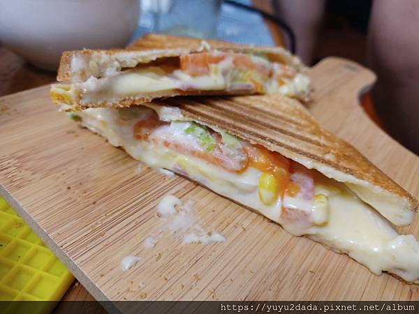 小彩蛋自己做的玉米蔬菜熱壓三明治