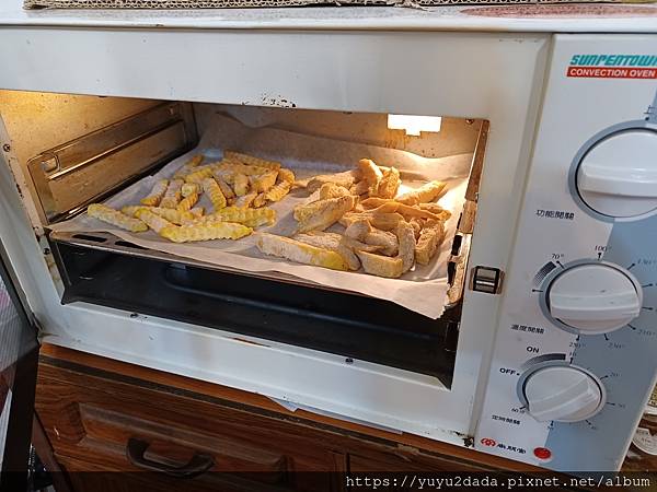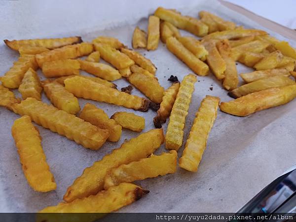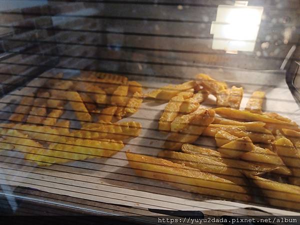 烤了10分鐘~看到金黃色的地瓜條出現瞜~