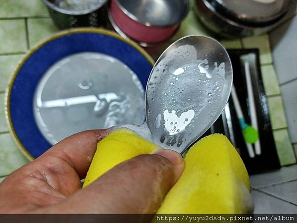 可以看到泡泡很細緻、很容易的就附著在餐具上了~