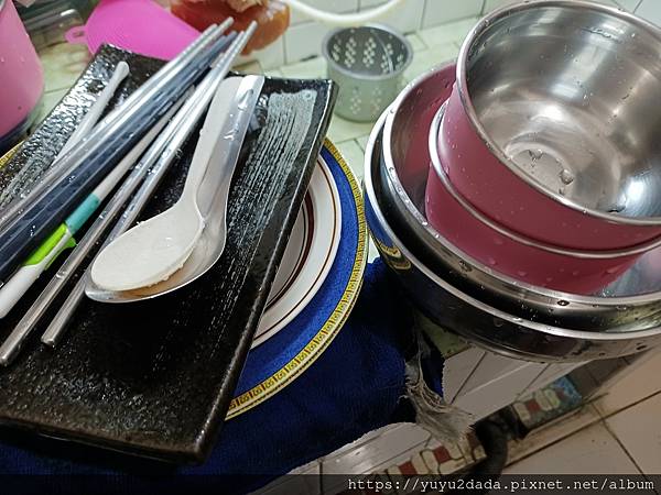 先從油膩較少的餐具開始清洗~之後再洗較油膩的餐具~