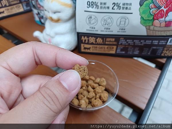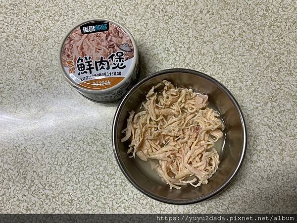 雞肉的 聞起來有肉香味~顏色也比竹筴魚看起來更亮一點~