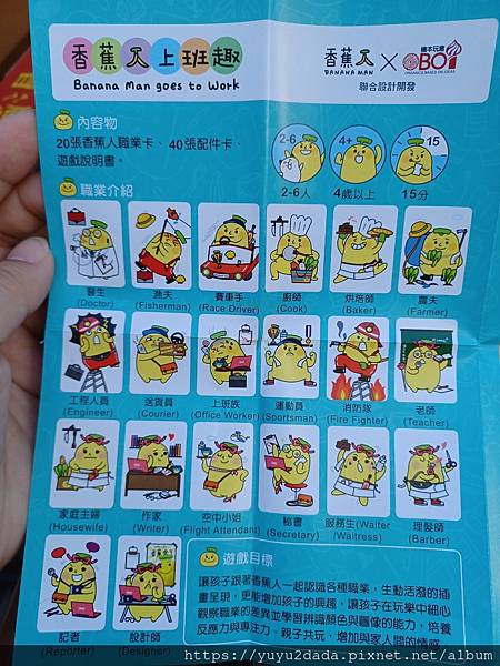 裡面會有20張香蕉人職業卡,每張卡會2張有各自對應的配件卡~