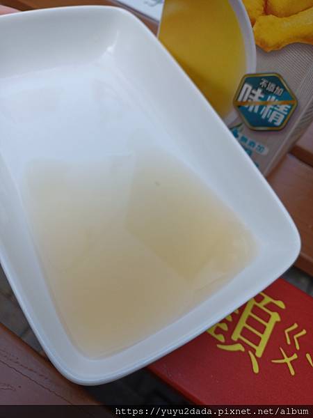 琥珀色的鮮雞湯~上面還有一點點的油脂(拍不太出來)